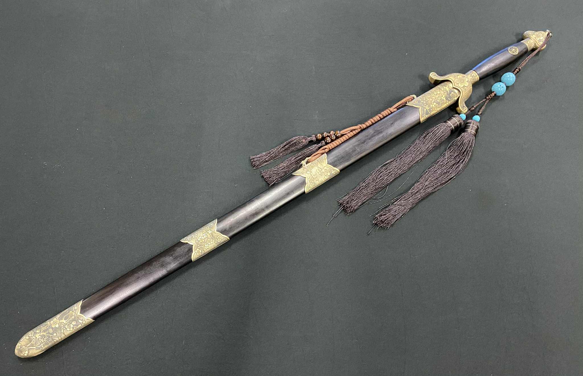Qing Dynasty Style Jian - Damascus Blade, Plum Brass fittings