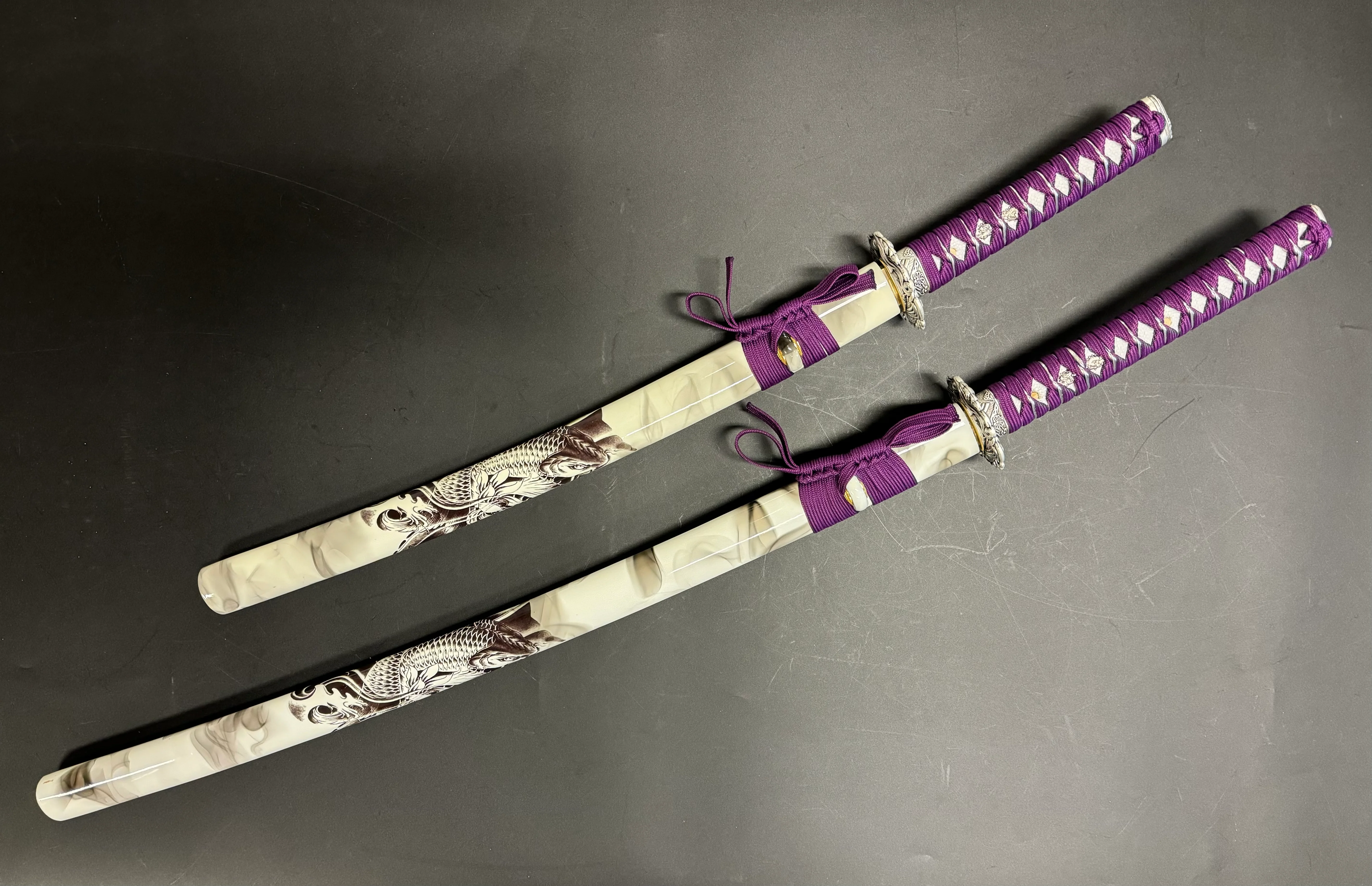 Dragonspring Forge Katana Wakizashi 2-sword Daishou - Purple Carp Daisho - T10 Clay Tempered